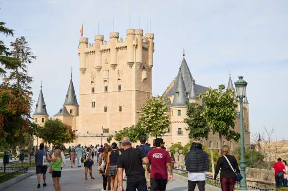 La experiencia concluye en el impresionante Alcázar de Segovia, un castillo de cuento de hadas encaramado en una colina rocosa.